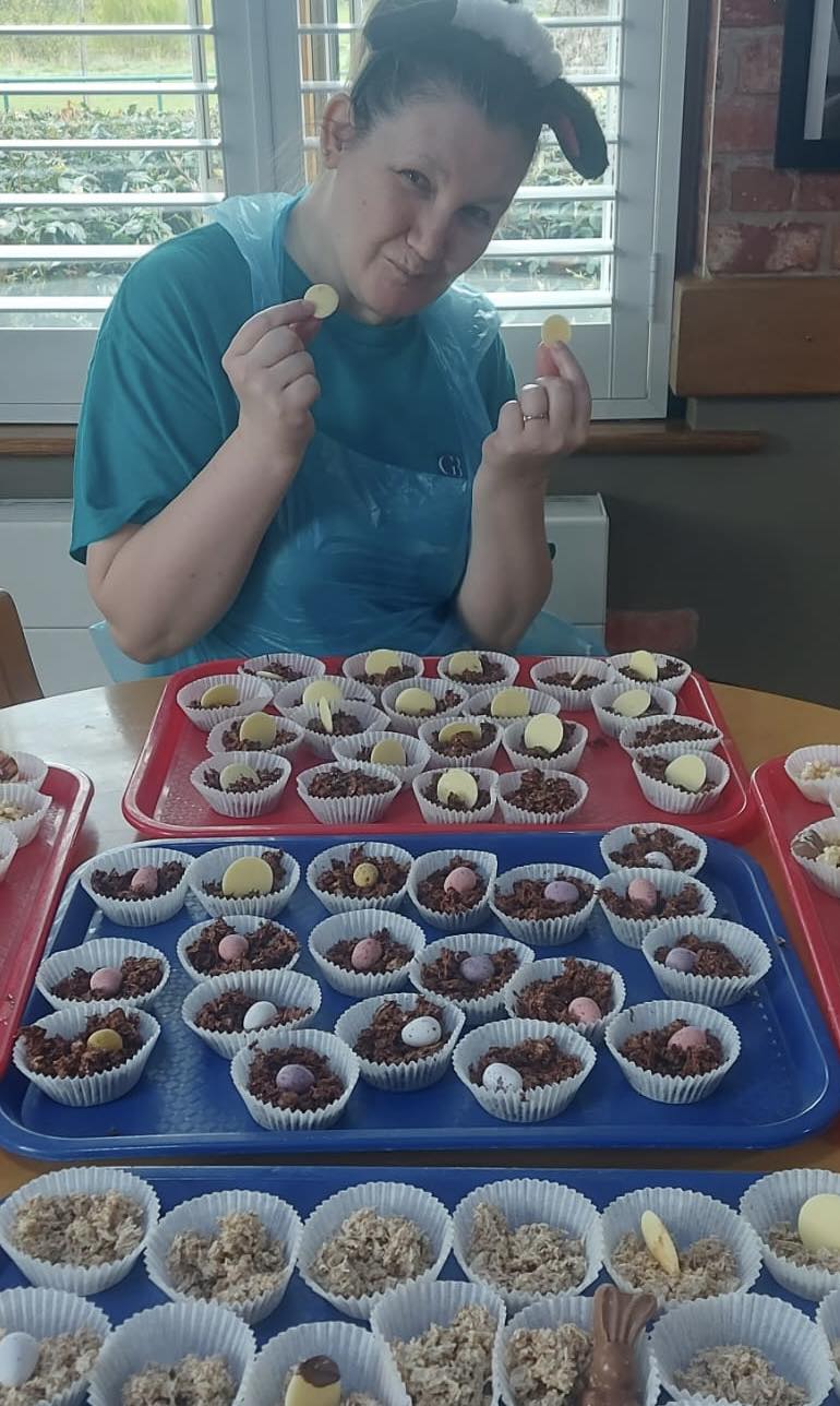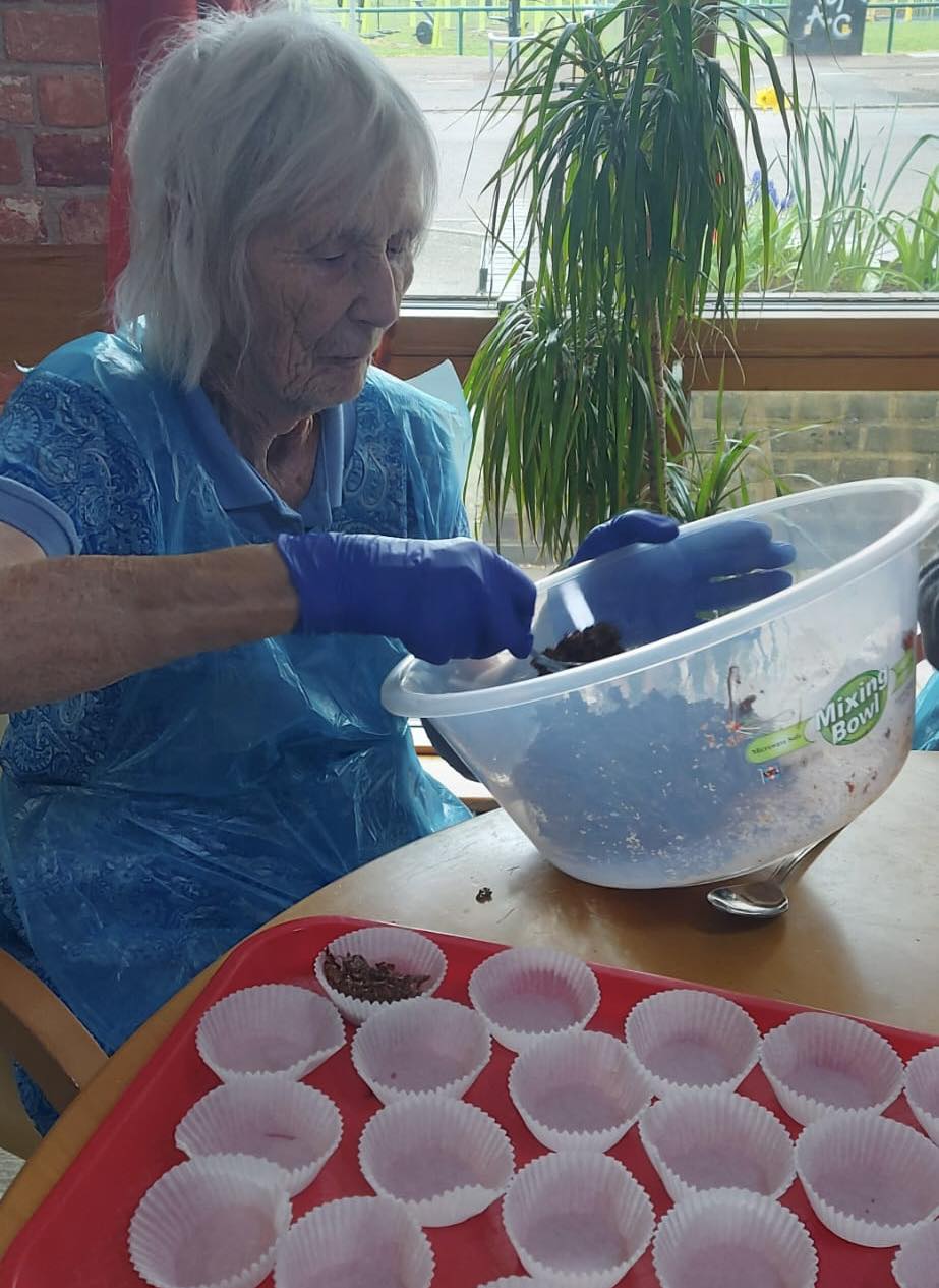 Here is Rose preparing the chocolate nests ready to set. These types of activity always bring back memories for our residents and we often share stories about being at home with our families and making cakes like these.